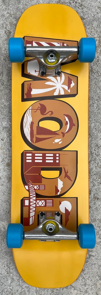 • MODE "Postcard" double-kick freestyle deck (hand-screenprinted design)